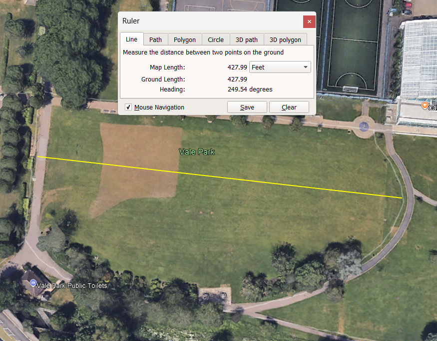 A measured site is one which has been measured but not to the extent required for a surveyed site due to being a “virtual” survey using online tools. This includes the use of satellite imagery from online mapping. Vertical extent of objects is completed through using “known” objects – eg a typical 2 storey house is around 25 ft tall.