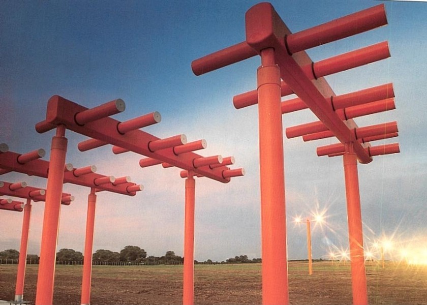 A typical ILS localizer installation at the departure end of the runway