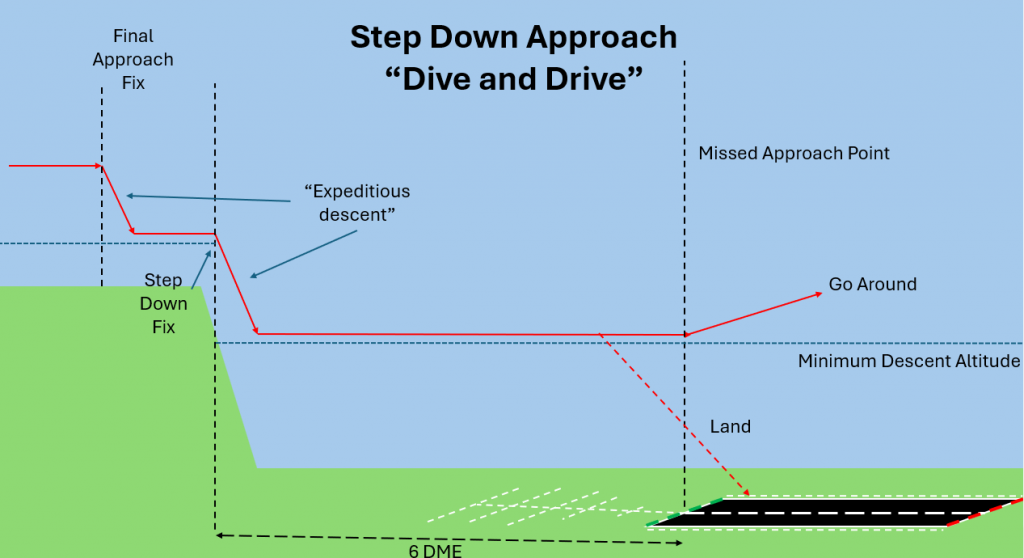 Step down descent (“Dive and drive”)
