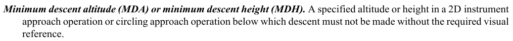 “The decision altitude (DA) to be used for a non-precision approach (NPA) flown with the continuous descent final approach (CDFA) technique…”2