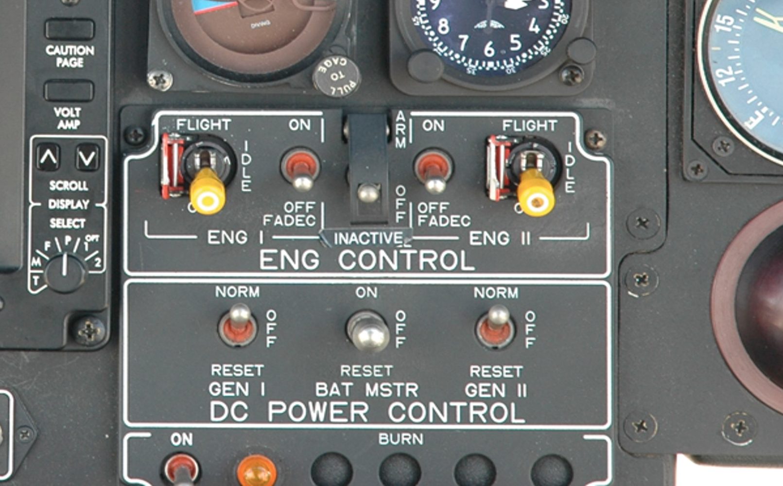 - Collective lever – Adjust as necessary to prevent the normal engine from overloading when affected engine is cut off.