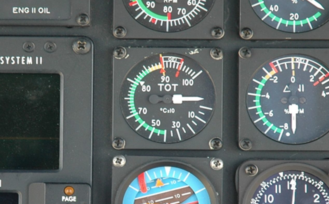 Now that is established, let us break down what he saw to lead him to make that switch selection. The pilot stated that after the first bang, 90 seconds after take off, that he looked at engine gauges and noticed a high TOT which was rising. TOT is not normally shown on the CDS so he must have been looking at the TOT dial. This has one needle per engine, which routinely close together with a small 1 or 2 on them – hard to see in the image below.