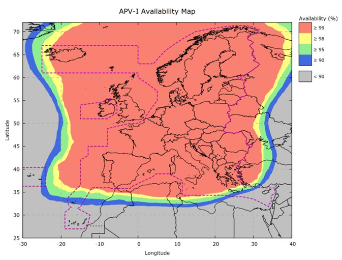 Again, the 99% availability of APV-I covers the UK. However, do you see the magenta line? That is a line denoting where EGNOS’ priorities lie in accordance with a statement in the SDD:
