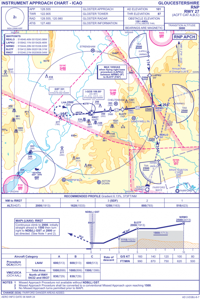 First, it should be immediately obvious from a glance through current UK approach charts that we have not lost LNAV despite not being permitted to use the SoL NPA level of service. For example, here’s an approach chart for Gloucestershire Airport’s RNP 27 which has LNAV minima.